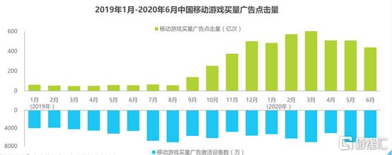 数据显示,虽然中国移动游戏买量广告在2019年9月后投放力度开始不断攀升,但背后的激活设备数却未产生明显上涨趋势,而是基本保持在稳定范围内。