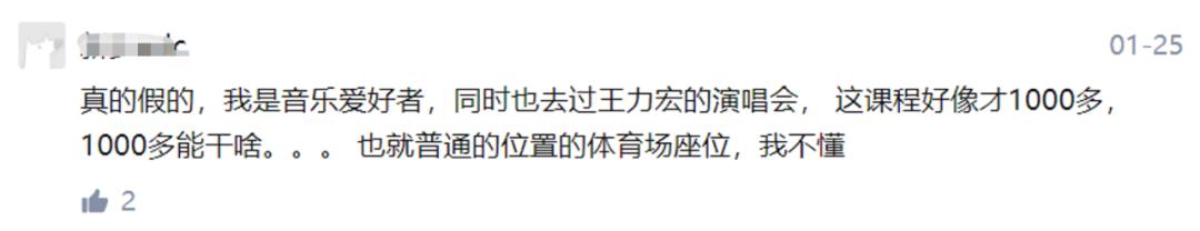 也有人发文章质疑王力宏卖课是割韭菜,但也有粉丝评论“1000多能干啥……也就普通位置的体育场座位”。