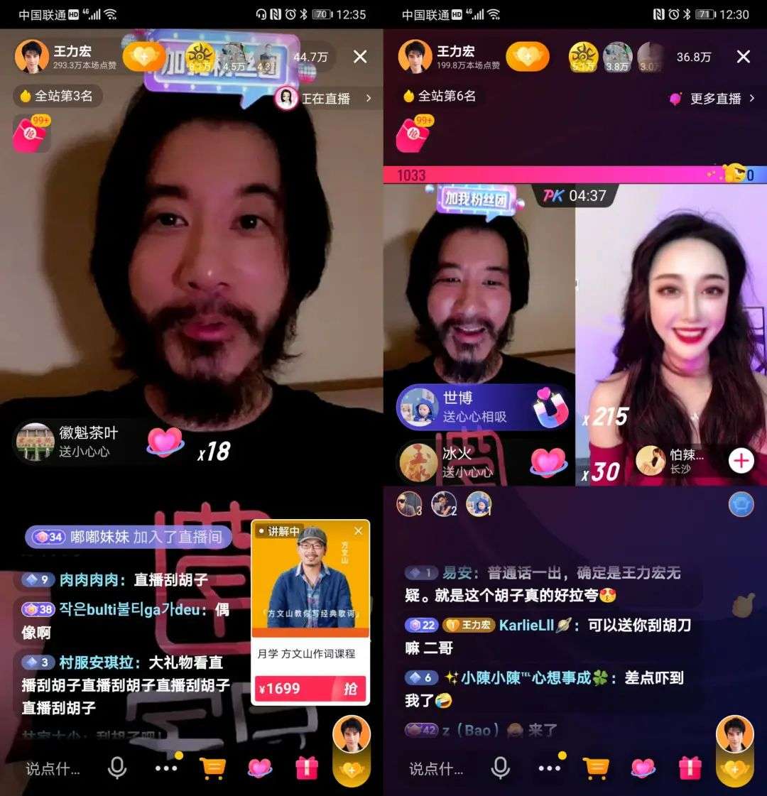 王力宏一边刮胡子,一边介绍自己的唱歌课程,直播间的在线人数也迅速从50万冲到68万,到达了当时的抖音小时榜第一。