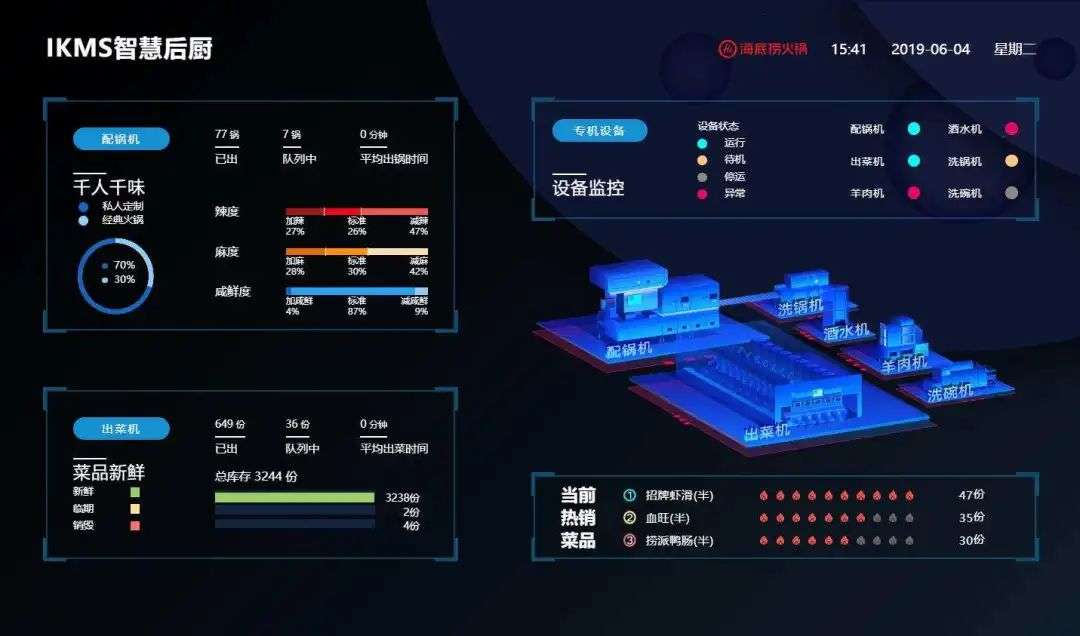 真正让大家侧目的,是今年4月海底捞在上海开出的新技术餐厅。这一次,“科技”更多地从前端后移,明显可见智能化在加深,且“直指后厨”,比如智能配锅机、全自动出菜机等,真正关注后厨效率和安全性提升。