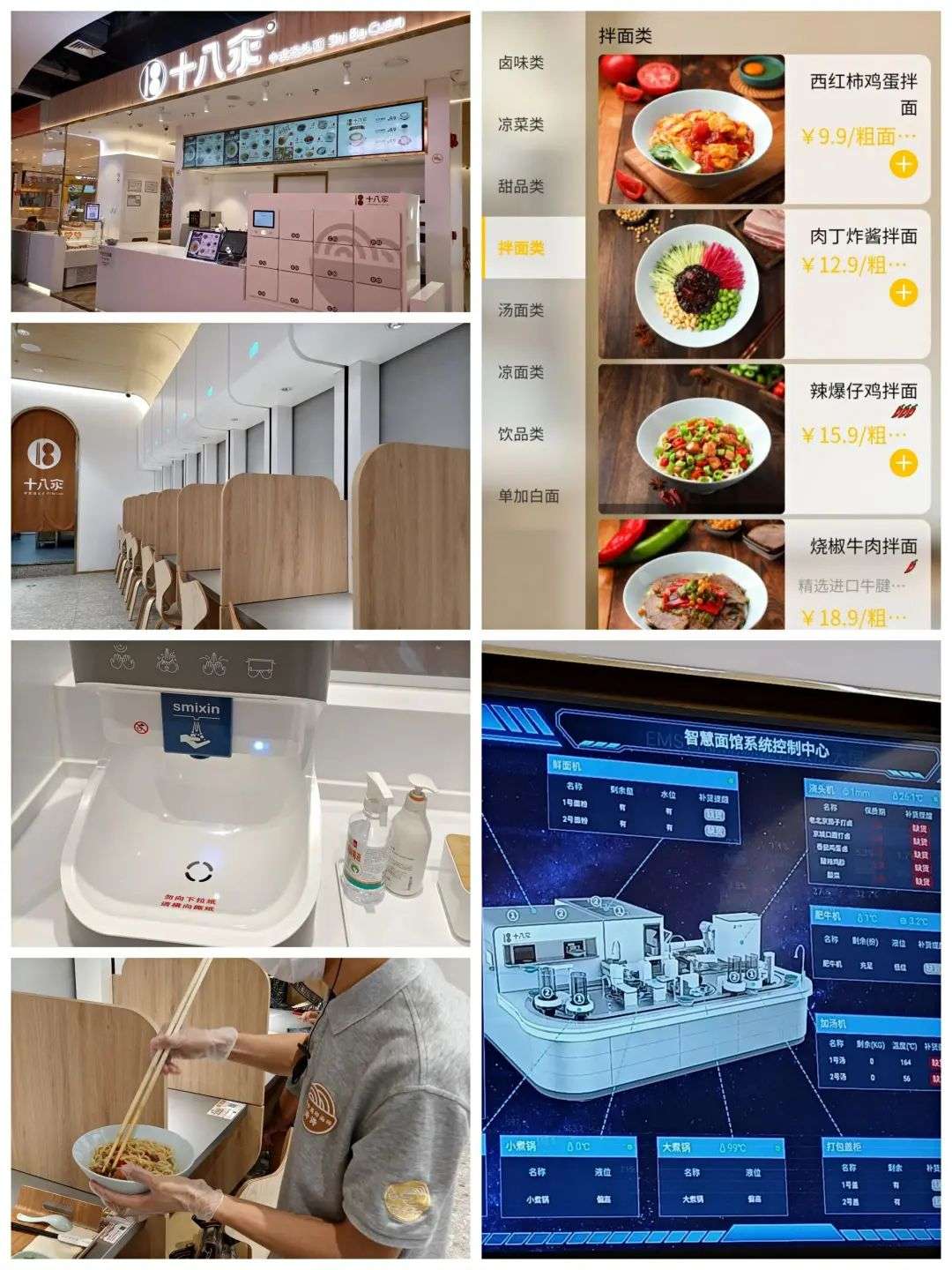 “基本上属于自助模式,到午饭的时候,大家几乎都在后厨忙,前厅留1个人即可。”店员告诉内参君。店内分为“1人食区域”和“普通卡座”,前者通过“门帘”实现点餐、小料、送餐全部无人接触。卡座区域尚需要服务员端上桌,的确在人效方面大大提高。