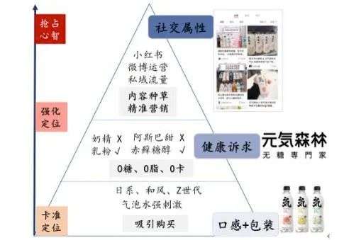 元气森林在销售渠道方面也有着清晰的目标。其外包装迎合大众日系的审美偏好,主打年轻,创新有活力的风格,深受年轻女性喜爱。起初,元气森林通过小红书,微博,抖音种草,KOL背书,由李佳琦等大主播带货推广,通过媒体造势将自身广告植入到符合自身产文化品定位的综艺、游戏之中,在线上大力推广。线下,元气森林敏锐地依据市场进行布局,大面积占领一、二线城市的便利店,形成规模化的销售。