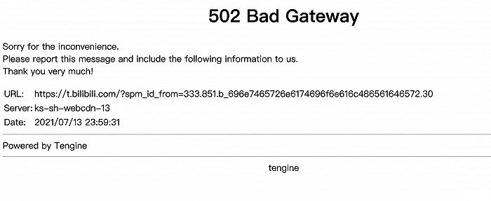 7月13日晚间,B站出现访问故障,“B站崩了”一度登上微博热搜。除了网站和移动端显示加载错误之外,B站出品的轻视频、剪辑软件必箭等均无法打开,显示页面加载出错。