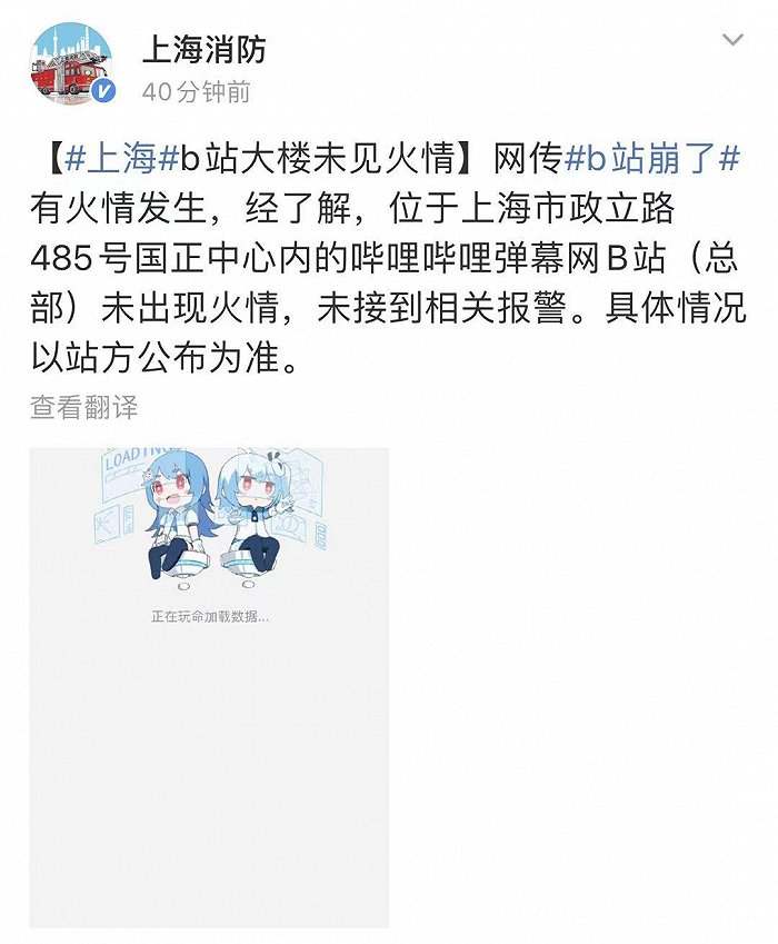 故障发生后,有网友反映称,原因可能是B站大楼停电,但界面新闻向内部员工处了解到,该消息不实。上海消防还发出声明称,B站(总部)未出现火情,未接到相关报警。