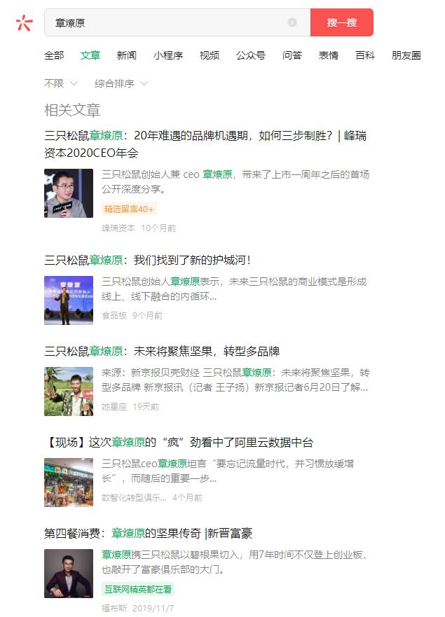 就连为三只松鼠提供A轮融资的IDG资本合伙人李丰,也是因为章燎原擅于利用社会化媒体推广自己的个人品牌,在圈子里出名了后,找上他的。(消息来源新经济100人:三只松鼠的秘密)