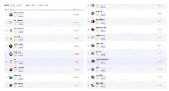(虎牙英雄联盟版块6月份流水前100排行榜,数据来源:小葫芦)