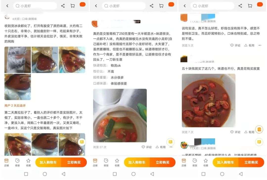 图 | 电商平台上有很多低价即食小龙虾的负面