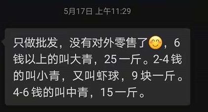 3-4月卖20多元一斤的小虾(0.5两以下),5月身价已经跌到了个位数,在8元一斤左右,甚至20元3斤的低价。