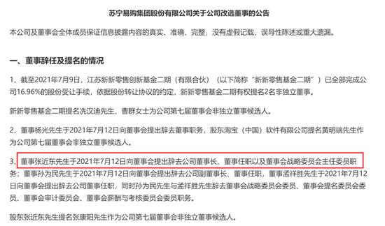 虽然辞去董事长职务,但作为公司创始人,经董事会一致同意聘任张近东为公司名誉董事长,将继续发挥其多年在零售行业发展中积累的经验与能力,为公司中长期的战略发展提供宝贵的意见和建议,在管理变革、推进企业文化传承等方面对公司给予指导。