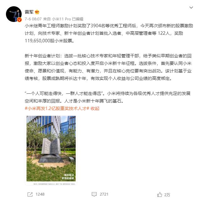 哪怕是雷军,不也在微博上对外宣布小米将向多名员工发放约7000万股的股票,对于那些优秀的工程师还会另外多给予一共3.5亿的股票。这些股票的实际意义大不大小雷这里不多做讨论,但足矣看出如今的互联网大厂为了吸引和留住人才,已经在薪酬福利方面开始“内卷”了。