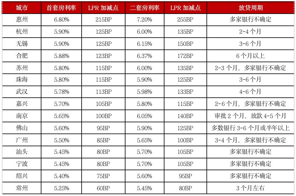 表:6月底至7月初多个热点城市上调房贷利率并延长放贷周期