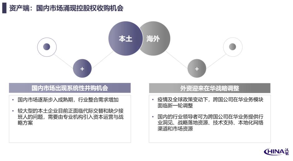 放眼全球,随着全球宏观环境的变化和贸易形势的改变,跨国公司在华业务模块面临新一轮调整。与其他地域相比,中国市场存在一定独特性,而新冠疫情带来的物理隔离及紧张的地缘关系为跨国公司在华经营带来了更多的挑战。头部的并购基金不仅能为进入中国市场的跨国公司提供行业方面的资金支持,更能凭借其优质的战略落地能力、本地化网络渠道和市场资源,推动被并购对象的业务更新。