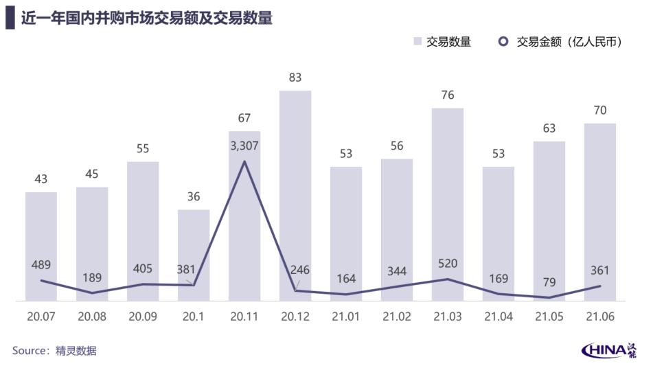 2021上半年国内并购市场:交易数同比接近翻倍达371单,超百亿交易仅有3起 | 36氪并购专题.千亿市值之路