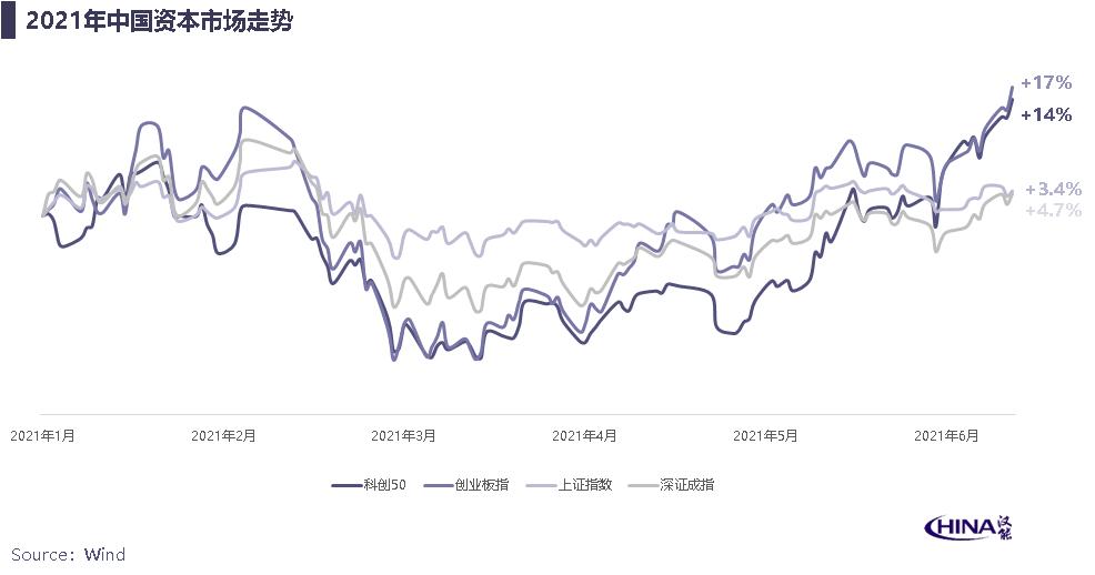 2021年春节期间,A股大盘跳水大跌。4月起市场走势回升,截至6月30日,上证指数、深证成指均较年初上涨+3.40%、+4.7%,创业板和科创50涨幅更是超过10%。