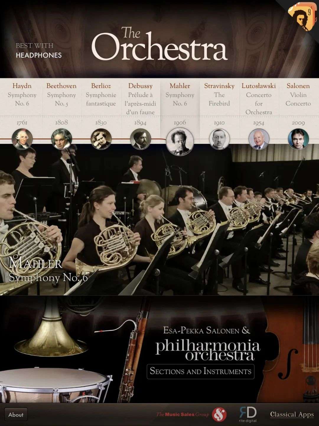 用之前提到的三个标签来看,这款 The Orchestra 对应的主要是 iPad 的大屏幕。它非常充分地利用了这块显示屏,同时显示着大量的有用信息。这些信息的同时显示既有利于用户从多个角度同时来理解音乐作品,又不会显得像是草率堆砌而成。它也利用到了 iPad 作为平板电脑的灵活性——书籍一样的排版拉近了与读者(用户)的距离,但这并不是主要的考量。