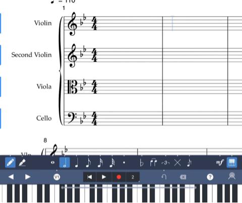 利用屏幕下方的琴键输入音符(需要预先设定时值),