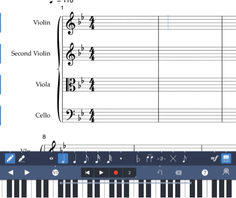 Symphony Pro 具有简洁而现代化的界面,输入功能也比 NotateMe 方便很多,但它似乎也不是那个助你「一曲告成」的工具:反正我是找不到如何插入双小节线,也不知道怎么在同一份乐谱里插入多个不同的调号: