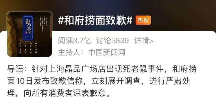 因为一只老鼠,就足以让和府捞面道歉上了热搜第一。