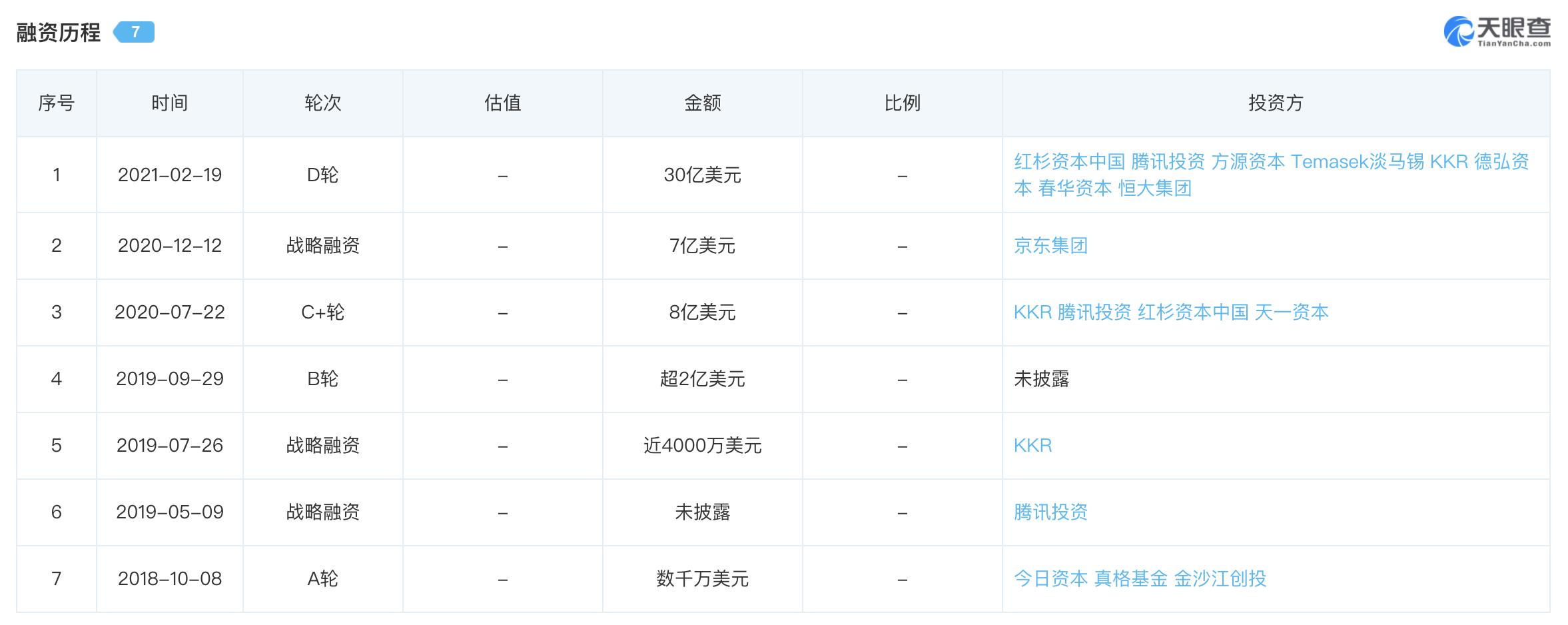 这是继今年2月完成30亿美金融资后,兴盛优选半年内的第二次融资,彼时其投后估值为80亿美金,短短半年涨幅达50%。成立至今,兴盛优选共获得8轮总计超50亿美金融资。另据36氪了解到,在去年12月京东领投的7亿美金融资中,腾讯也有入局,加注超1亿美金。