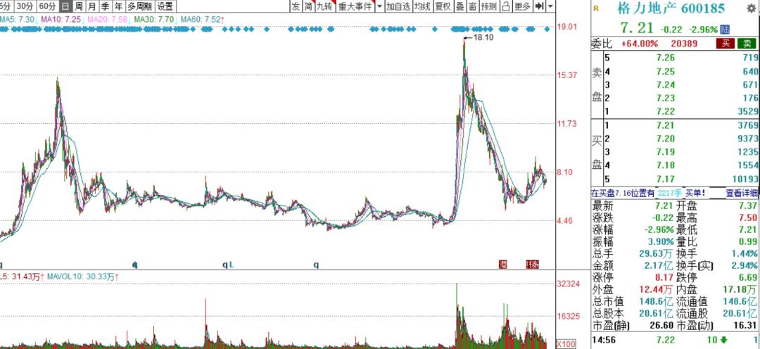 截止7月14日收盘,格力地产报7.21元/股,跌2.96%。