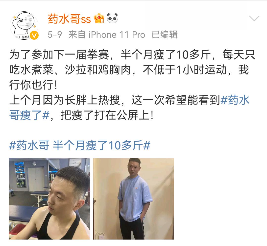 就连不靠脸吃饭的药水哥都开始“卷”了起来,通过每天只吃水煮菜、沙拉和鸡胸肉,加上不低于1小时的运动,半个月成功瘦身10多斤。