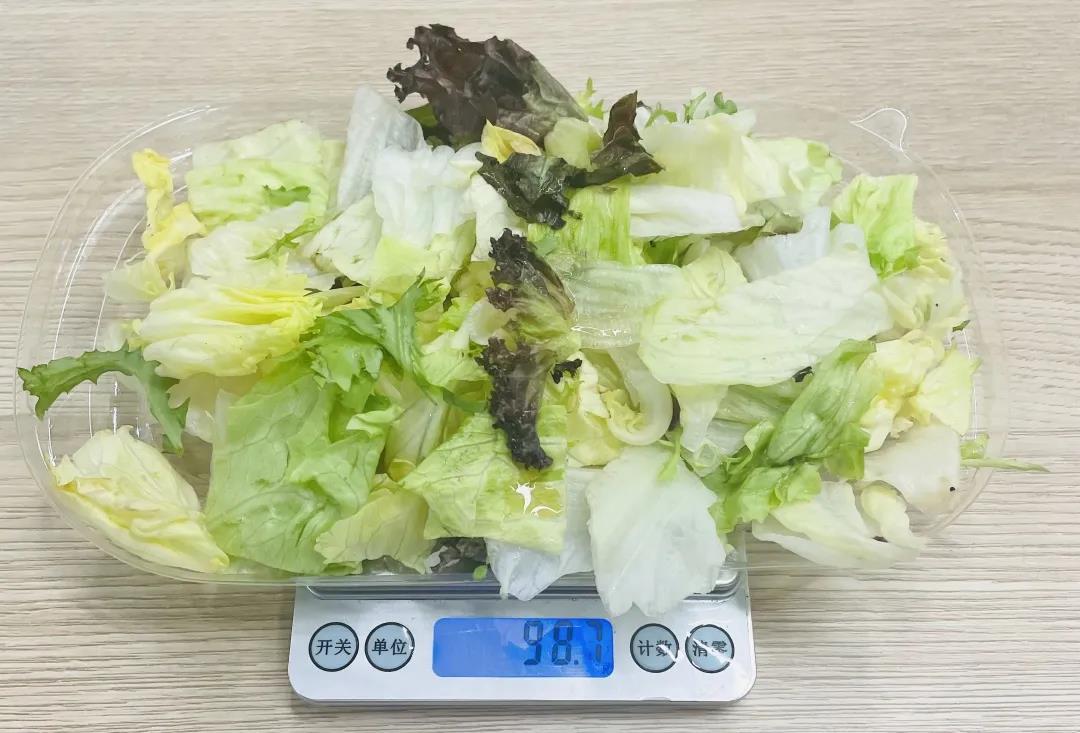 不过,在丁香医生对轻食的一次随机测算里,一份轻食中,生的蔬菜看起来体积大,但实际上量真不多,在感动自己自律后将食材一上称——除去盖子,一大堆蔬菜的重量只有90克,与膳食指南中每天300~500克的蔬菜食用推荐量相比,还差一大截。