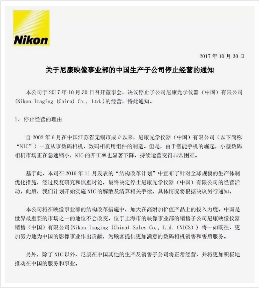 在关闭中国的相机生产基地后再关闭日本工厂,此举无疑意味着日本制造尼康相机的历史就此终结,尼康相机彻底转变为“泰国制造”。