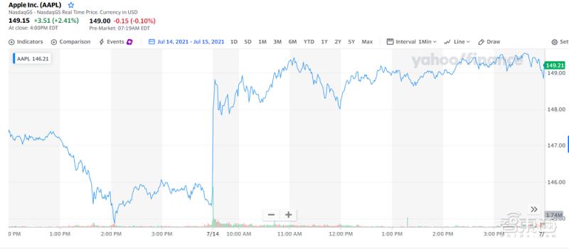 ▲苹果7月14日至7月15日的股价变化图