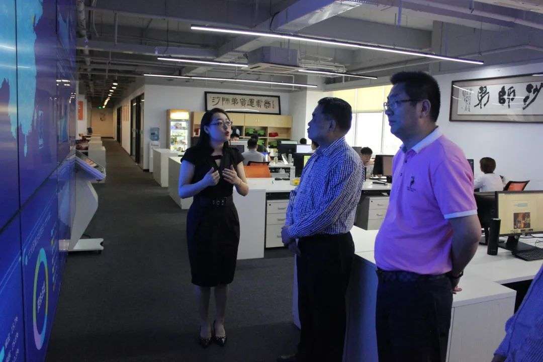 梅部长一行在沙师弟战略发展中心运营总监姚秋红的带引下来到沙师弟数字展示大厅,查看当前沙师弟货运云商平台车货匹配交易数据和车源、货源的实时动态,详细听取姚秋红总监关于沙师弟货运云商发展史及当前平台经营情况的汇报。梅部长高度认可沙师弟货运云商的经营理念、商业模式及产业发展经验,并对沙师弟公司利国利民的使命感和社会责任感表示赞赏。