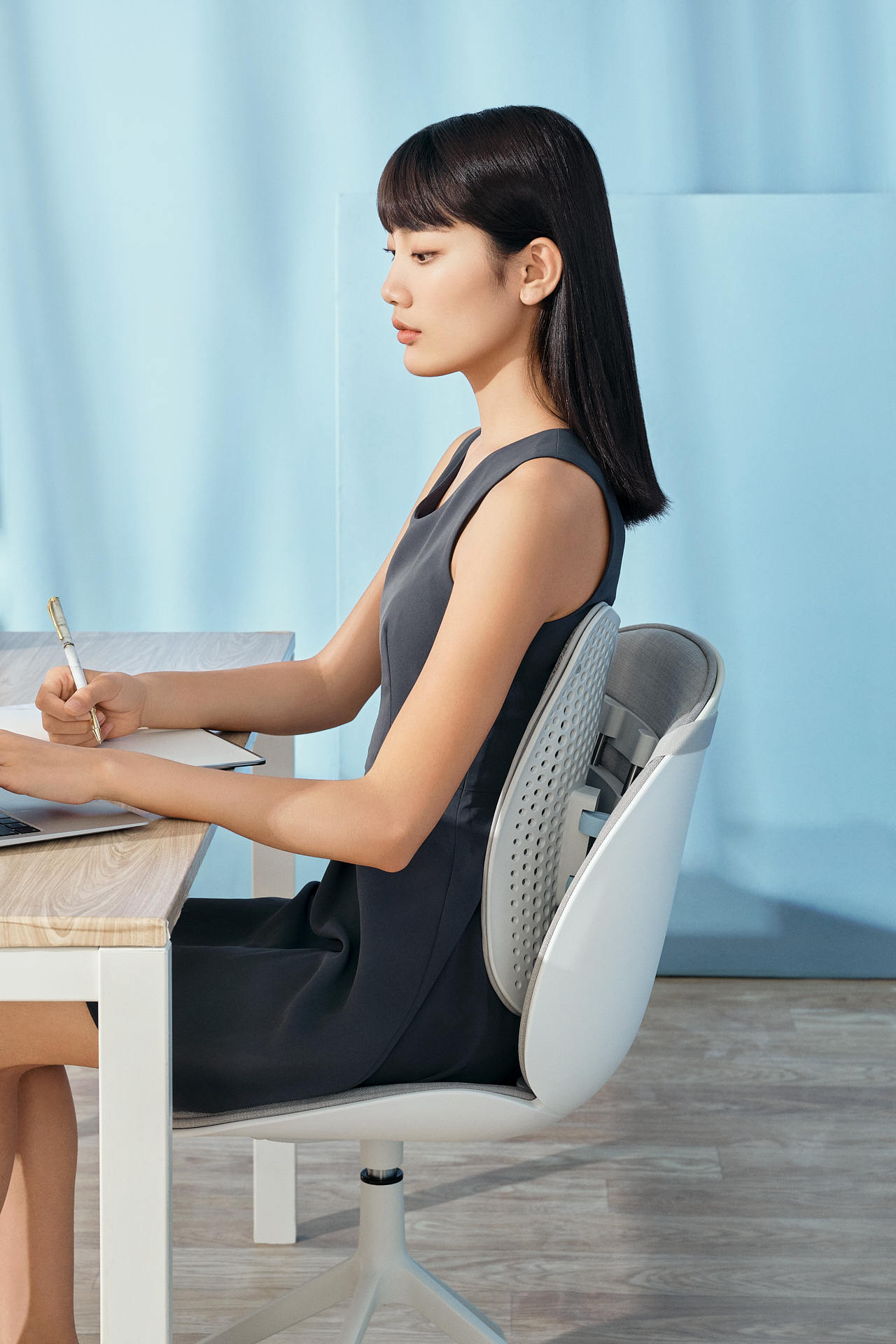 围绕健康办公场景,乐范推出电动升降台和人体工学可调背靠等产品。利用升降台,上班族可实现坐站办公的切换,连接手机 APP 并输入身高与桌高后,升降台可自动调整并记忆适合用户的高度。人体工学可调背靠依据人体工程学,采用环抱式设计,可动态迎合人体脊柱自然弯度,背托部分有306个透气孔,适用于办公座椅和汽车座椅。