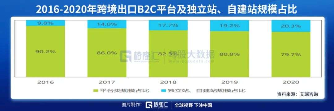 近年跨境出口B2C平台及独立站、自建站规模对比