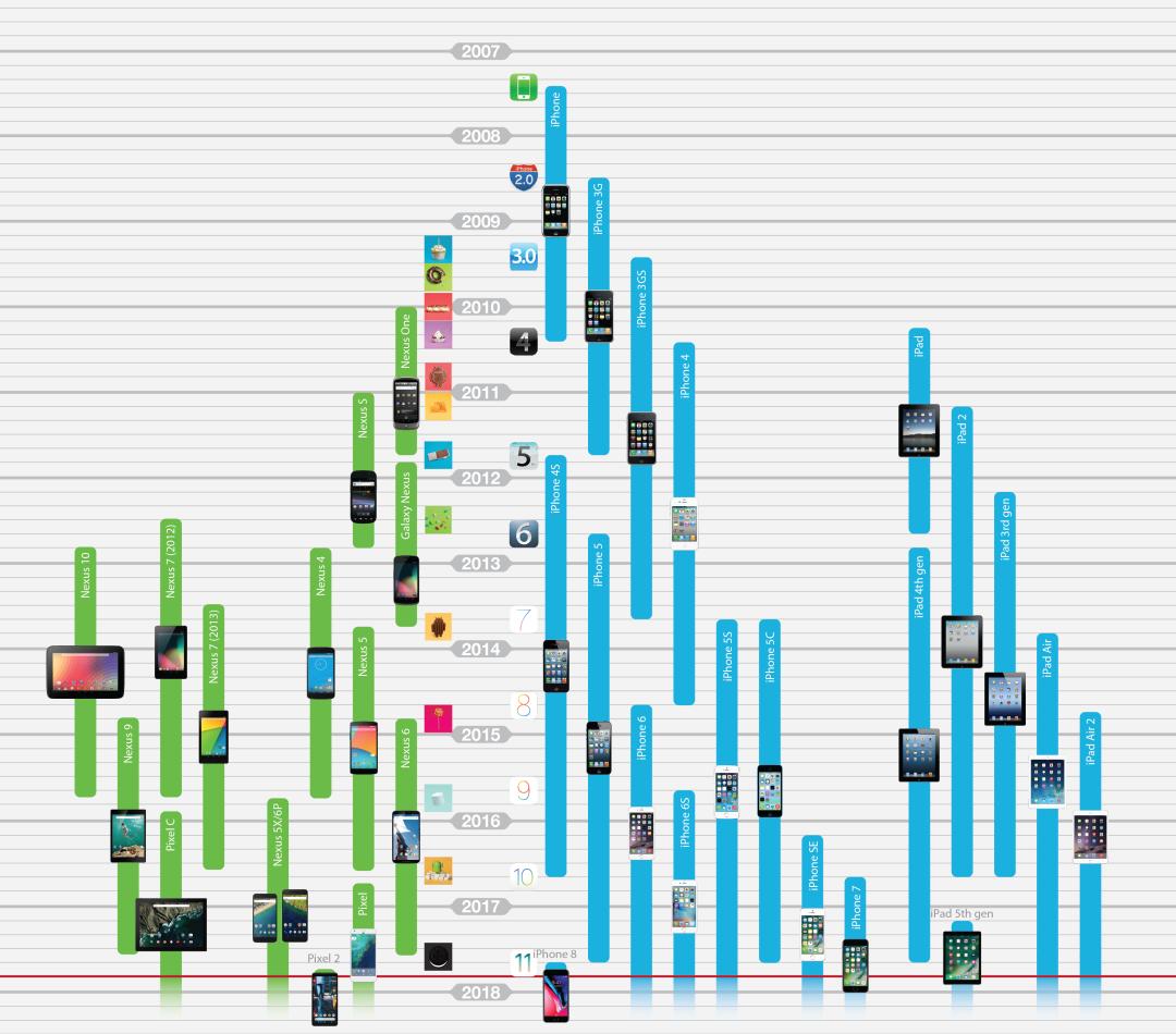 Android Police 曾于 2017 年做了统计,当时谷歌的“亲儿子” Pixel、Nexus 手机及平板电脑仅有平均 31.2 个月的软件支持,iPhone 和 iPad 的平均支持周期则长达 50.1 个月。