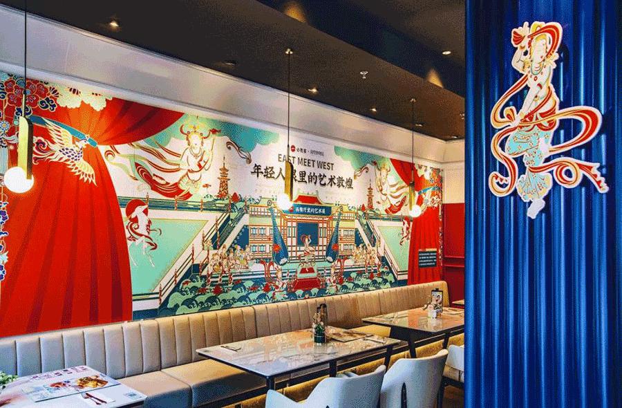 2020年11月,必胜客与敦煌博物馆联合在全国9城开出9家主题餐厅,将敦煌艺术引入必胜客的餐厅空间设计之中,如墙上的敦煌壁画、敦煌限定款餐垫等,呈现“中西结合”的美感。此外,必胜客还推出敦煌限定套餐,设置敦煌周边展示区。
