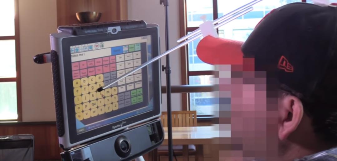 受试者在 16 年前因中风瘫痪在床并且失语多年,他通常使用头部运动控制辅助计算机打字与他人交流。