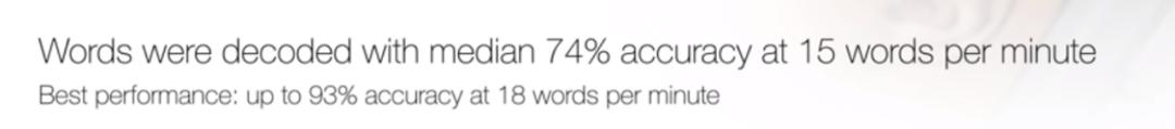 实验结果显示,这个脑机接口系统平均每分钟可以实时解码 15.2 个单词,平均准确率为 74%。并且,每分钟最多可以解码 18 个单词,准确率最高可以达到 93%。在事后分析中,研究者检测到受试者试图生成单个单词的概率为 98%,并且在 81 周的研究期间,他们使用稳定皮质信号分类单词的准确率达到了 47.1% 。