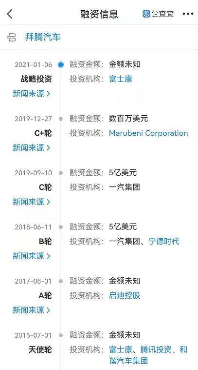 蔚来、小鹏、理想都创立在2015年,拜腾在创立时间上并没有掉队,一开始的融资也非常顺利。