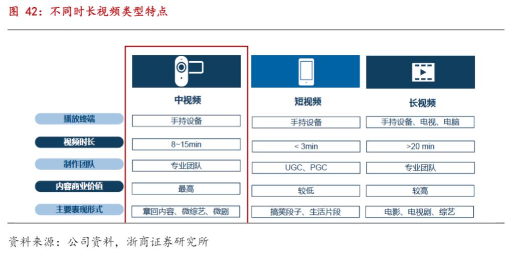 浙商证券研报提及,由专业团队制作,以章回内容、微综艺、微剧为主的中视频因其具有的高内容商业价值,且中视频制作周期短,仅为10天左右,变现速度可观,预计中视频将成为视频内容的大势所趋,为赞助商、平台与制作方带来更高收益。