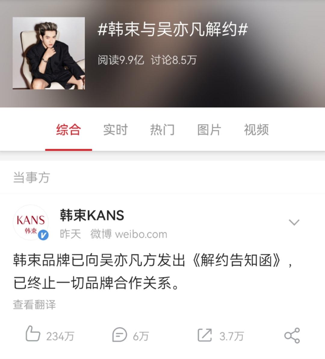 起因是某位吴姓明星事件持续发酵,引发全网声讨热潮。18日晚7点,美妆品牌韩束先于其他品牌宣布与吴亦凡解约,表明自己的立场与态度,硬气的姿态获得网友表扬,#韩束解约 旋即登上微博热搜。
