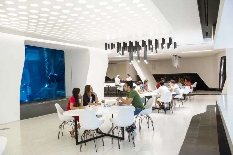 而针对不亲自潜入水中的用户,迪拜深潜馆还设置了观察区,让他们可以看到潜水泳池里的环境。此外,深潜馆内还有一个可容纳80人的水下餐厅,游客们可以一边吃饭,一边欣赏眼前的水下世界。