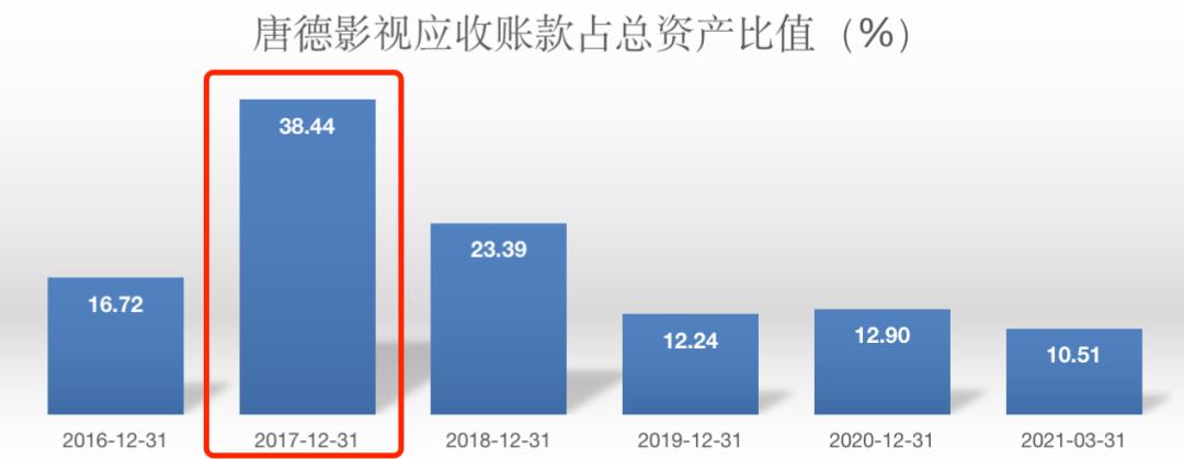 这一度使得唐德影视应收账款猛增195%,达到了12.55亿元,占总资产比重的38%。