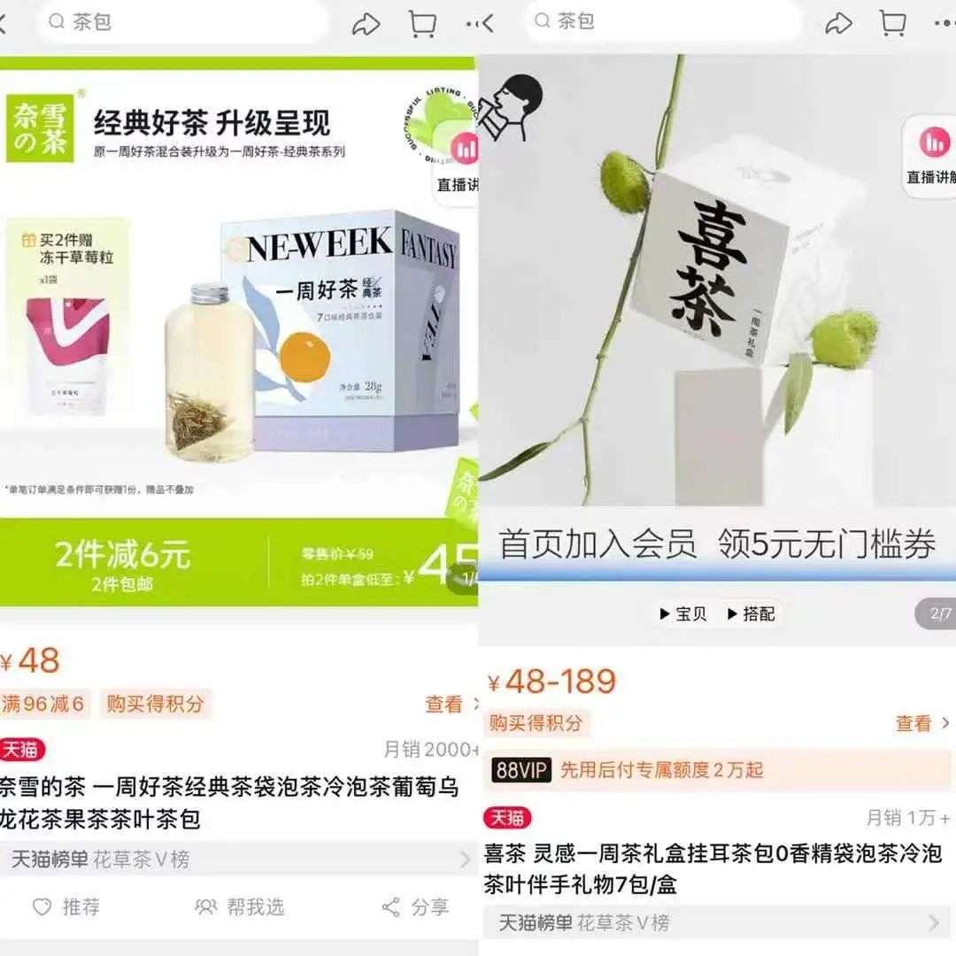 从这个思路看,对于奶茶品牌们来说,茶包成了一个有效触及新增人群的商品,也从平台对人群的观察出发,诞生了诸如“灵感茶”、“一周好茶”这种更有品牌和颜值属性的茶包,区别于传统茶包更强调品种和功效。