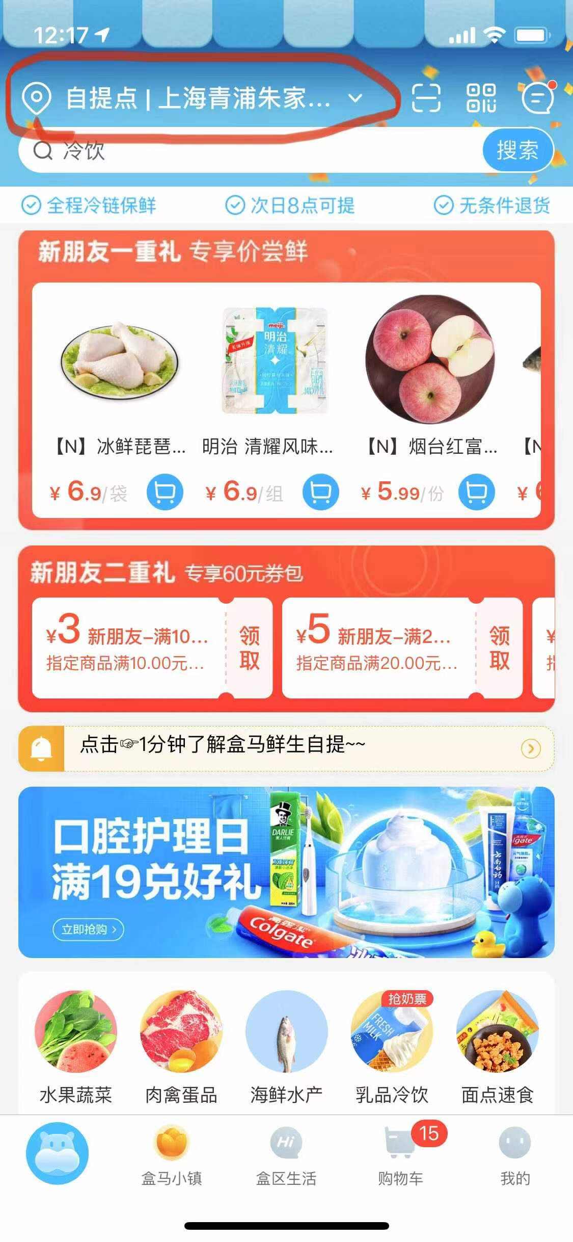 盒马app内的盒马邻里入口