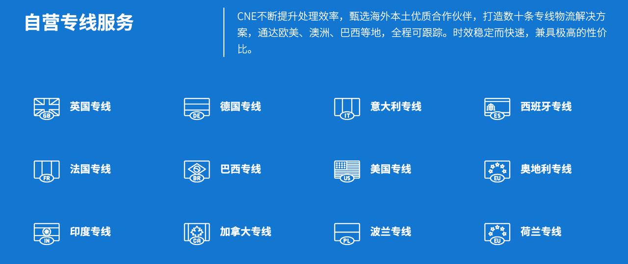 创立至今,递一物流已形成丰富的产品矩阵,业务线包括国际快递、CNE 专线、国际小包、国际大包及仓储服务等。其中,CNE 专线以自营渠道为主,是目前递一物流营收重点,其下设三个系列产品 —— CNE 全球优先、CNE 全球特惠、CNE 全球经济。