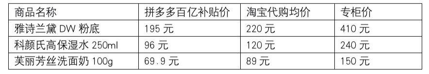 从上述数据中可以看到,这些为大众喜闻乐见的品牌,在拼多多上的价格基本上是专柜价的二分之一甚至更低,再加上各种担保,消费者很难不心动。