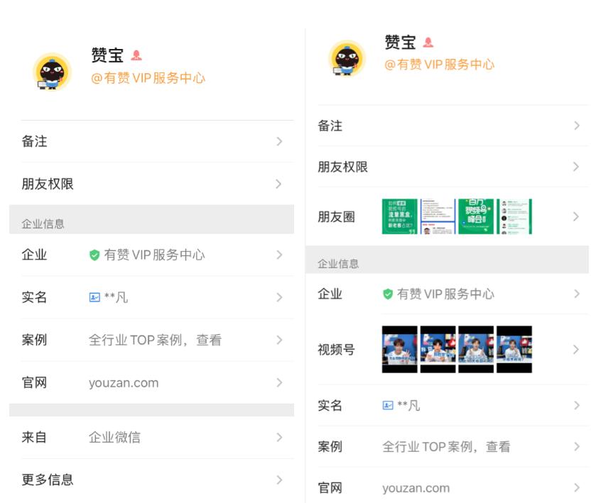 举例来说,员工、导购等在企业微信个人信息页中展现企业视频号,客户可通过该入口进入到视频号,观看视频号短视频、直播等内容。目前,有赞支持视频号挂商品链接,客户可通过查看员工视频号,直接下单购买。