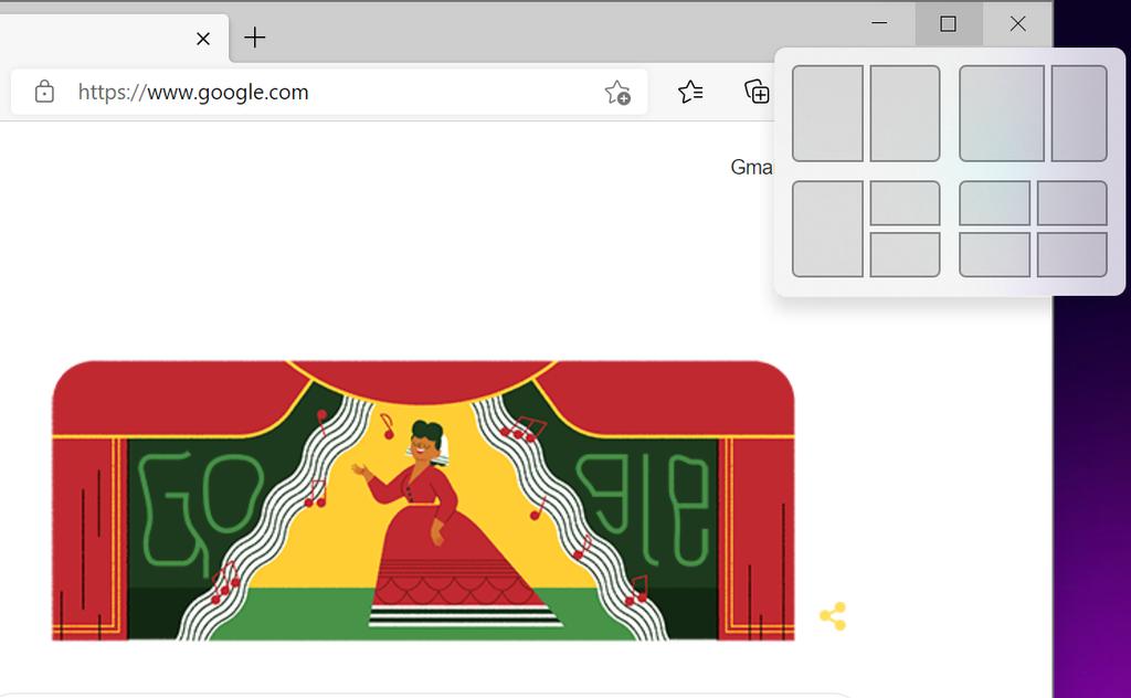 最有趣的设计变更之一是一个叫做 Snap Layouts 的功能,这个功能我很喜欢。在应用的右上角,如果把鼠标光标悬停到最大化窗口按钮的话,系统就会打开一个网格,里面展现了从可自动缩小到重新定位app的各种不同部署。
