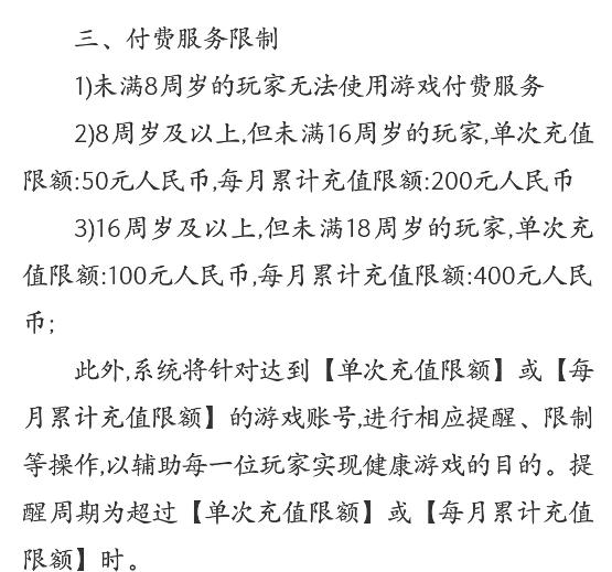 限制玩家充值金额。比如说B站运营的一部分游戏。