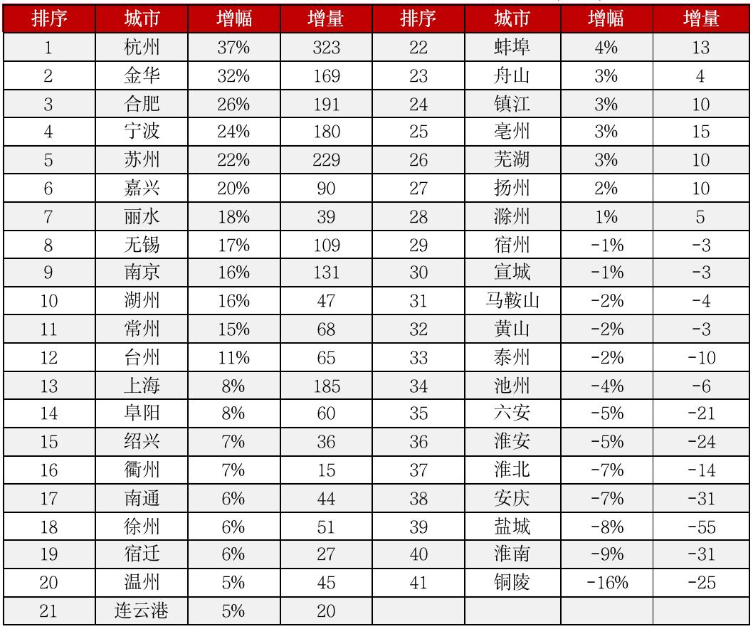 浙北和苏南的城市虽然在教育水平和劳动力比重上不及上述核心城市,但由于民营经济发达,购买力也不容小觑,尤其是近十年人口增量比较突出的金华、嘉兴等城市,需求支撑性较佳。