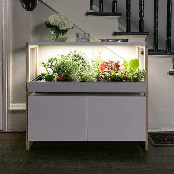 Rise Gardens的水培园艺产品包括耕作系统、种子、营养剂、自来水箱、LED种植灯以及一个配套App。用户可以通过App监测水位和植物生长情况,App还会提醒用户何时浇水、施肥。Rise Gardens的微型系统采用模块化设计,共有包括桌面版在内的3种尺寸,能容纳8株到108株植物,售价从279美元到949美元不等。