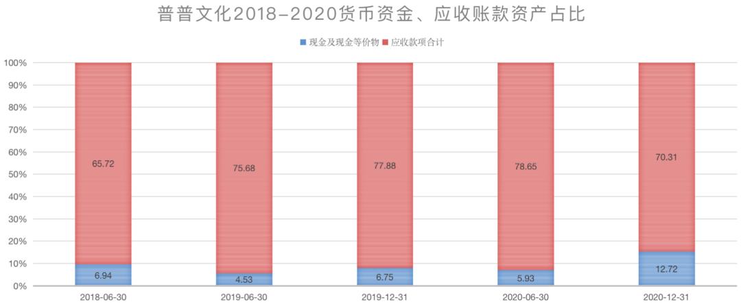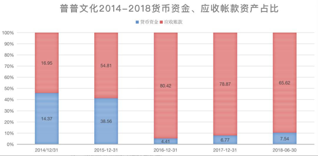 为什么造血如此困难?这恐怕要问金主爸爸们。从财报来看,普普文化的应收账款占总资产比例常年超50%,2016年甚至突破过80%。简单理解就是,活给客户干了,发票给人开了,但很多人都打了白条没给钱。这表明普普文化对下游客户的话语权极弱。